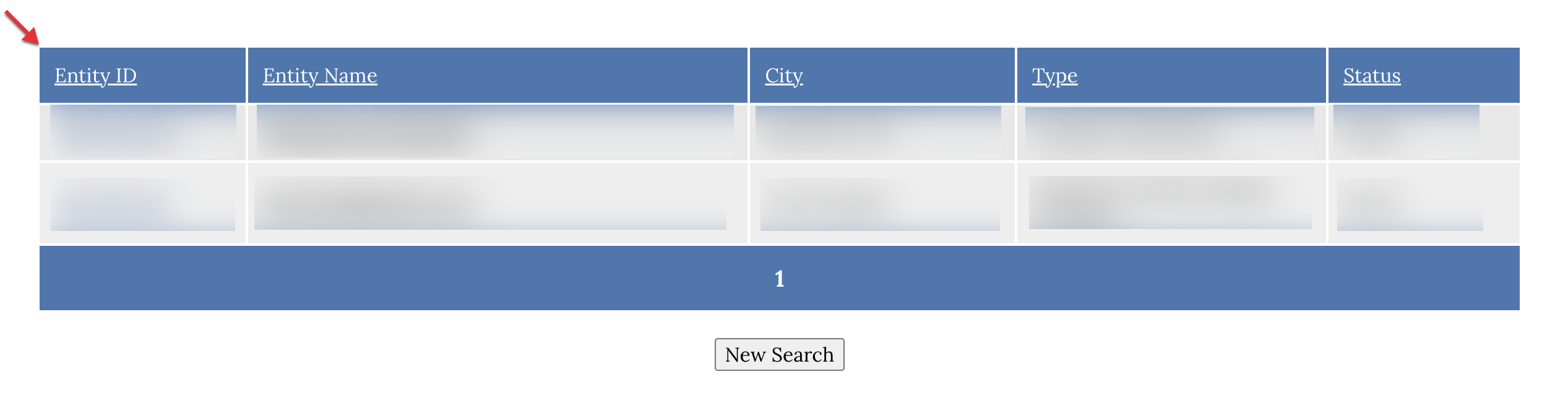 Click on the Entity ID or the Entity Name links and be directed to the business details page.