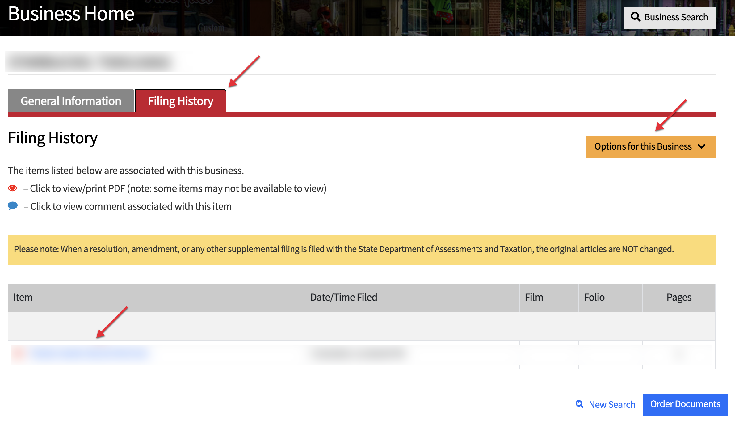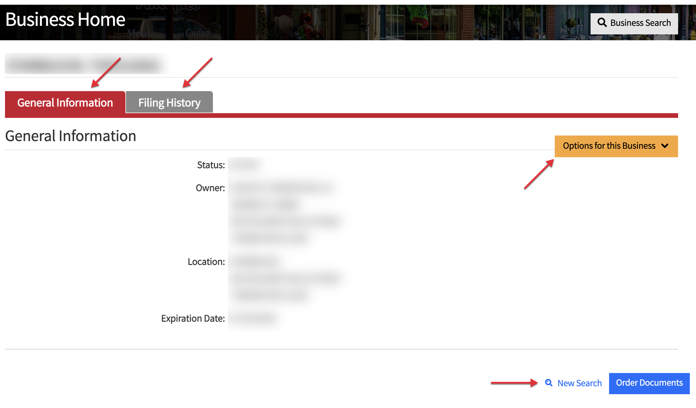 Review each section of the Maryland business as summarized in its “General Information” page.