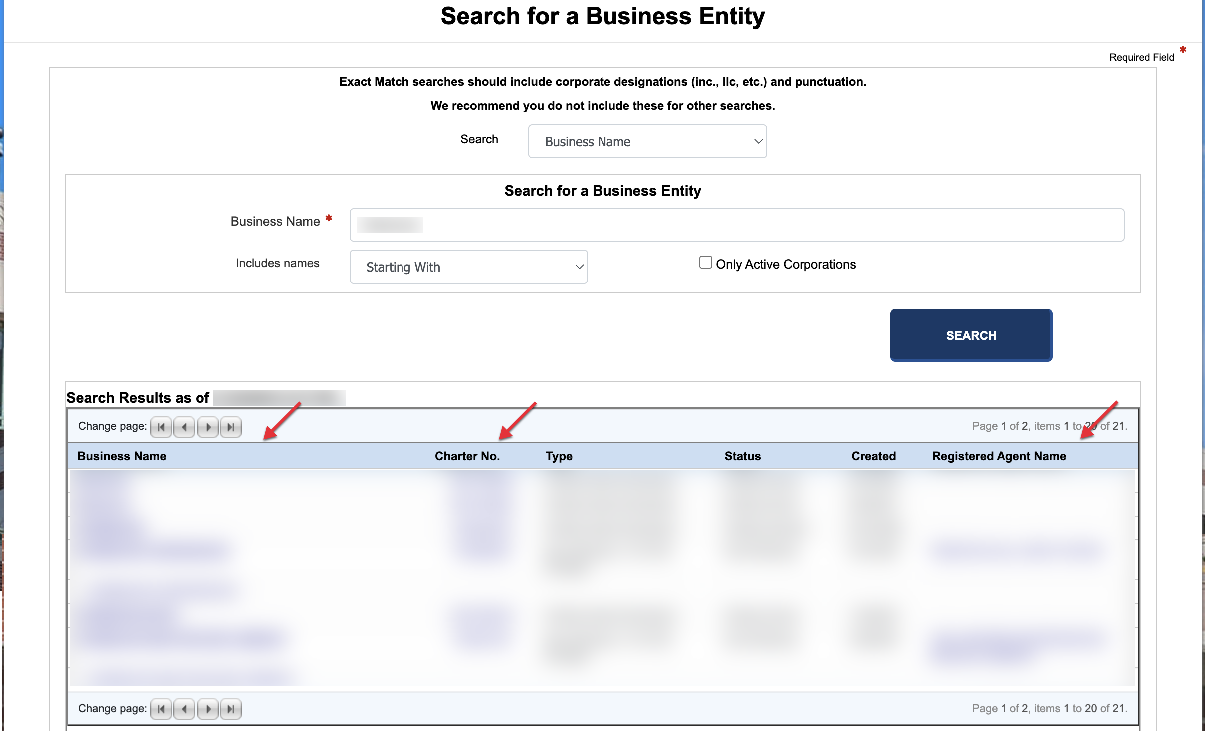 Next, type the phrase that the query tool should seek in the database in the “Business Name” search box.