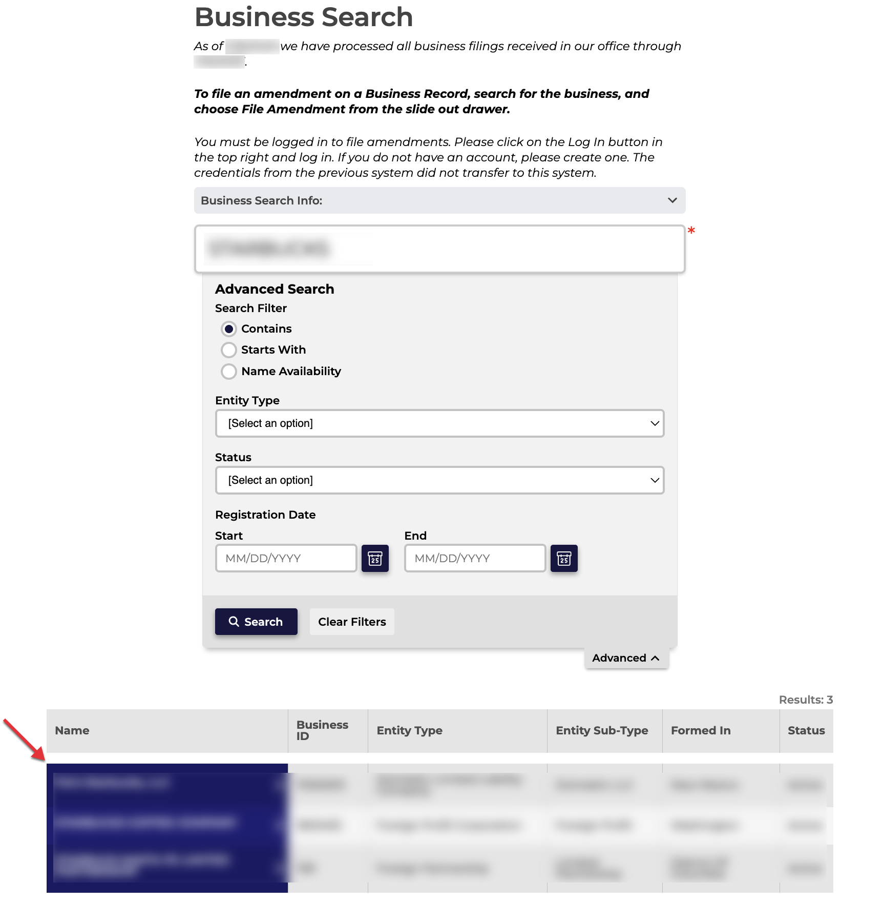 Once you have located the New Mexico entity name to review, select it (from the first column).