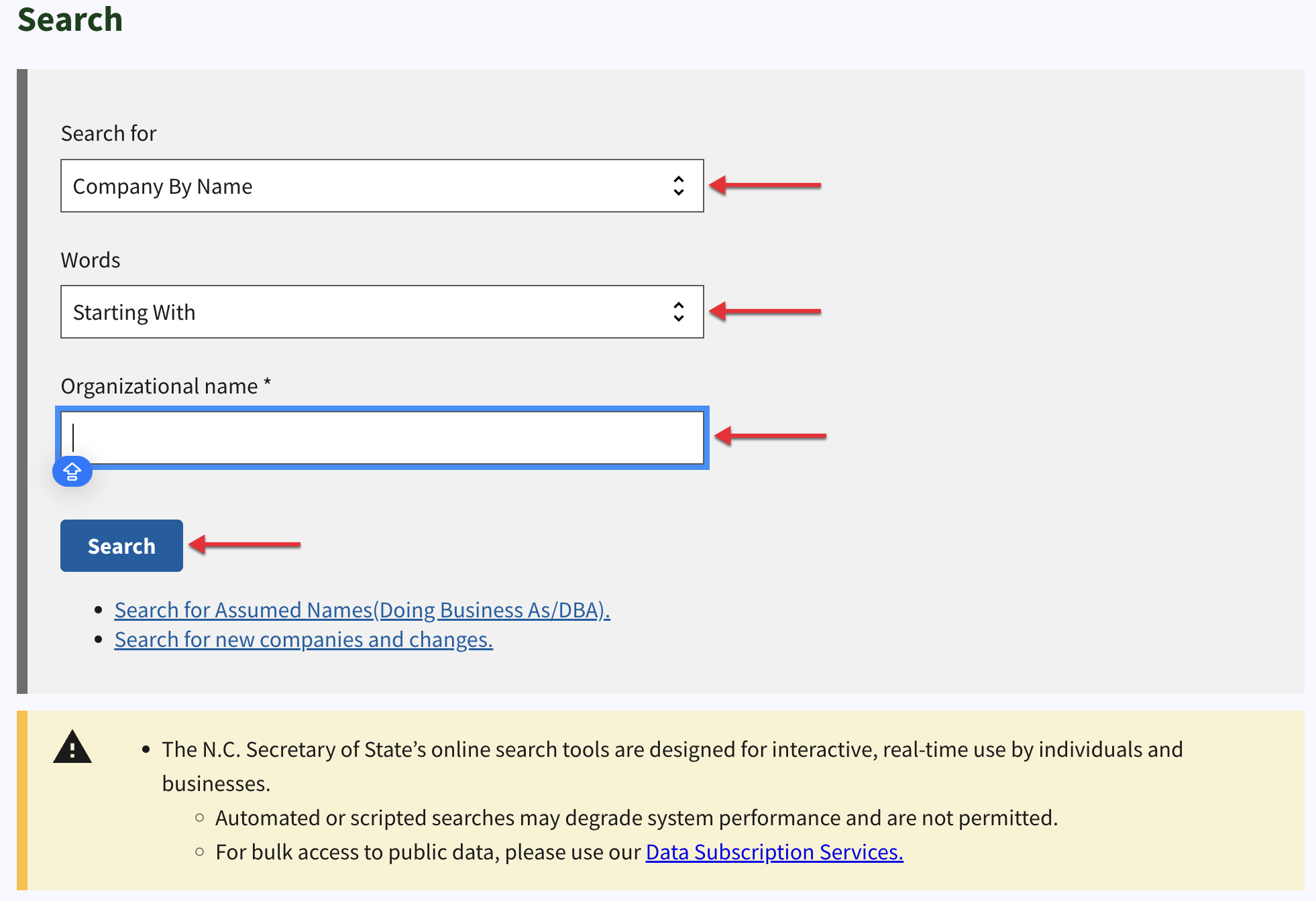 The North Carolina Secretary of State business entity search engine gives its users access to the filing details of LLCs, corporations, and partnerships registered. To be in good standing, businesses must file with the North Carolina Secretary of State to operate within the state. Such registration information is available through its database. It is recommended to have as much information about the entity as possible when conducting this search.
