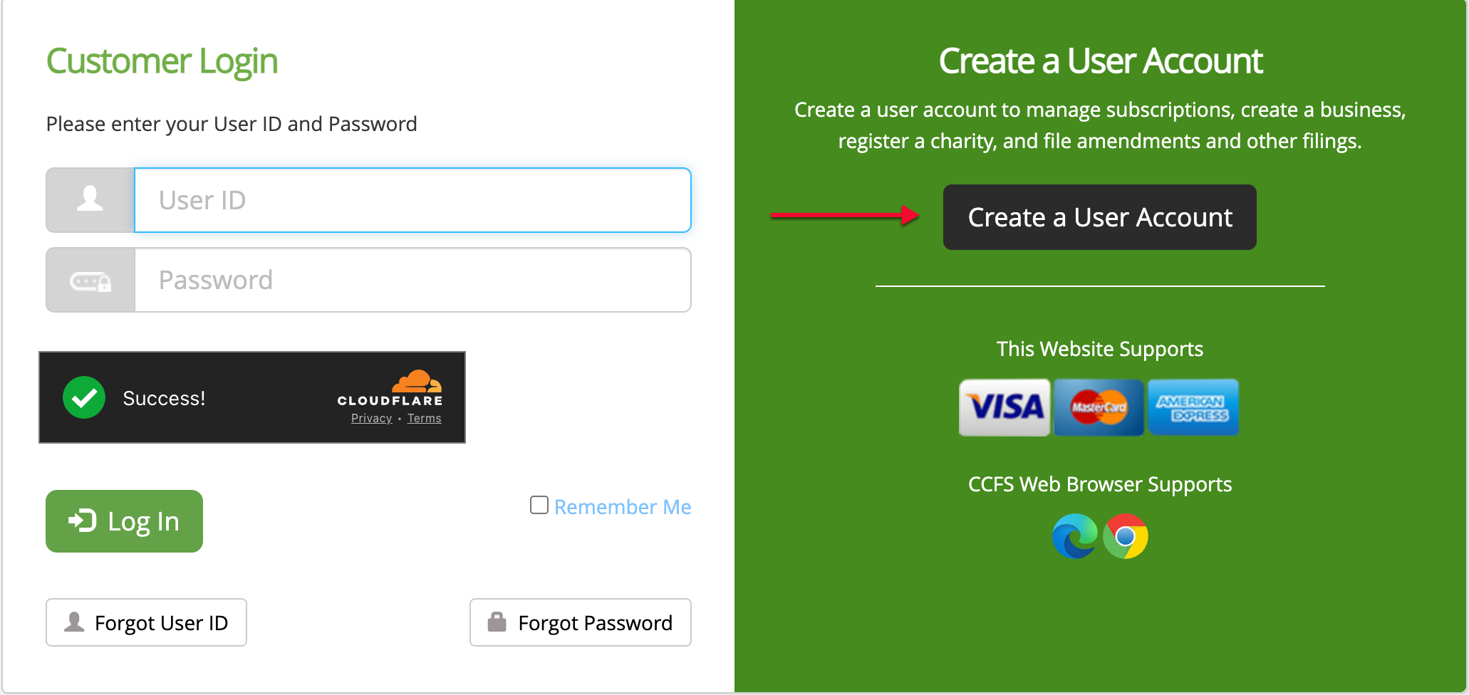If you need a login to complete actions then, return to the home page and select “Create User Account.”