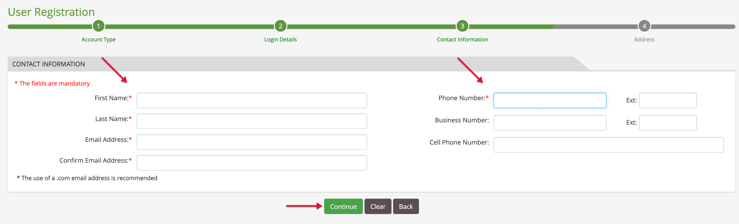 Present your contact information to the appropriately labeled field, then click the “Continue” button.