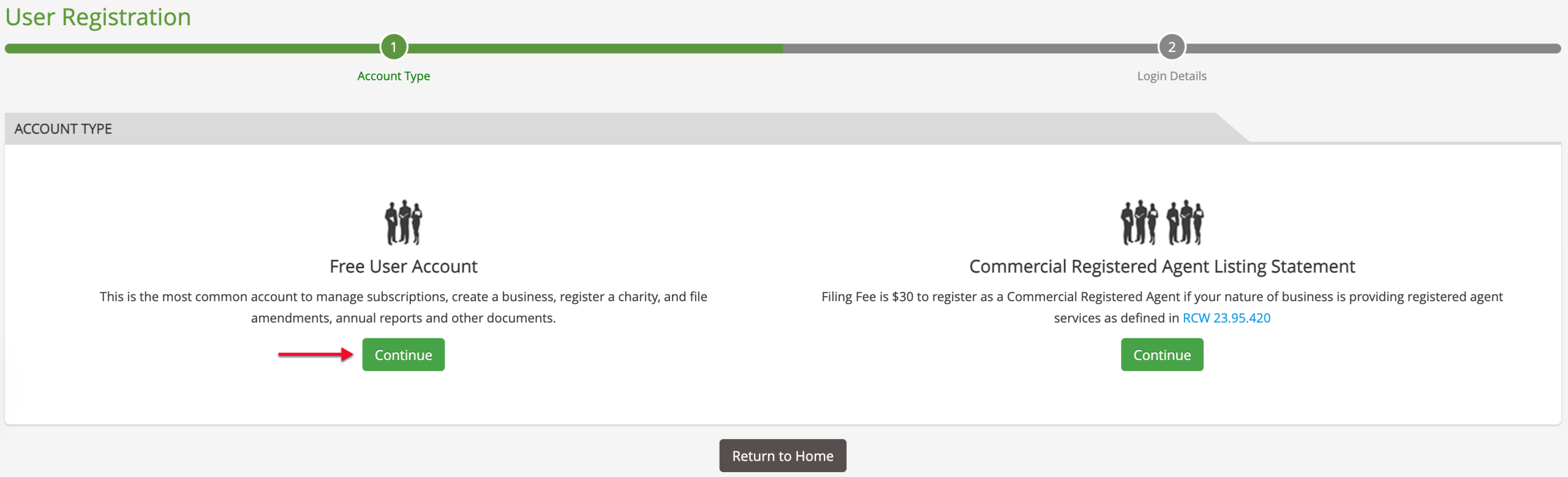 Select the “Continue” button under “Free User Account” (for our purpose).